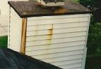 In a prefabricated chimney, the visible sign of rust can be an indication of much larger problem. A rusted chase pan should be inspected to determine whether interior damage is occurring. |
