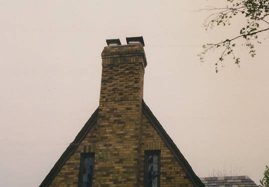 Water damaged chimneys in need of rebuild without an exact product match. Decorative offsets were used to break the visual look of the chimney to create the illusion that the product matched. When a close product is not available complete tear down to roof is an option. |