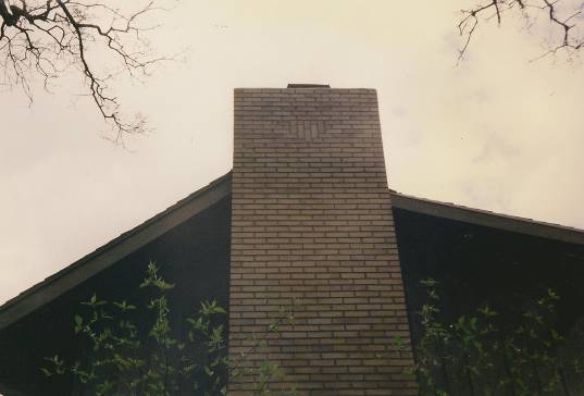 Water damaged chimneys in need of rebuild without an exact product match. Decorative offsets were used to break the visual look of the chimney to create the illusion that the product matched. When a close product is not available complete tear down to roof is an option.