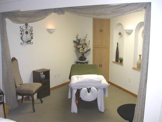 Here is an example of a cold, uninviting office space that was in need of transformation into a relaxing spa-like environment. With the addition of partition walls, re-purposed storage, and custom woodwork with marbleized faux finish, this commercial space was transformed |